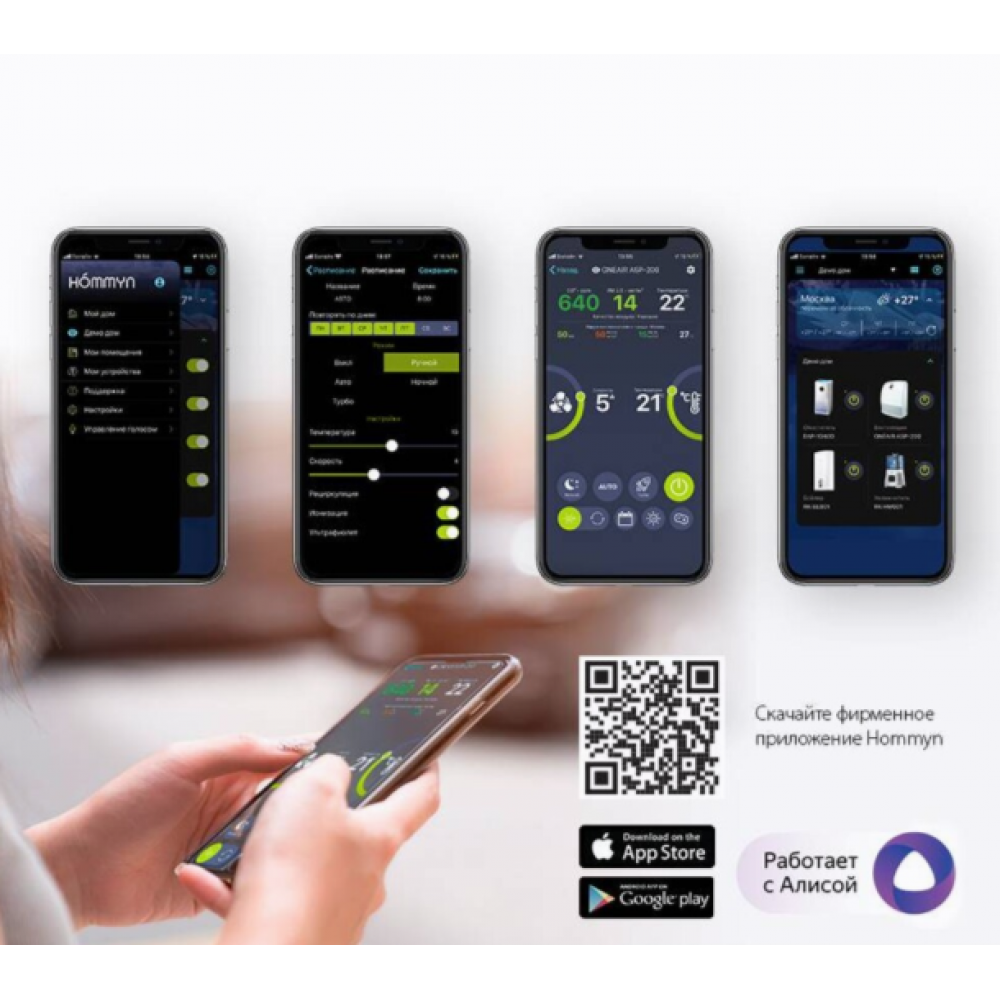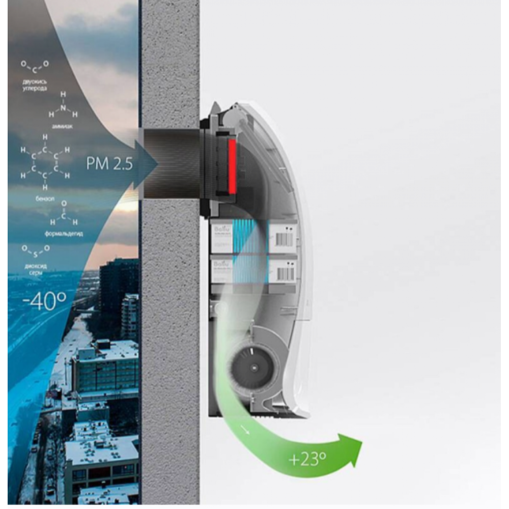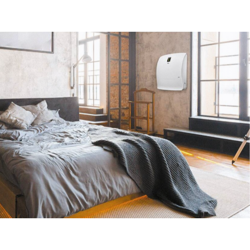 Ballu ONEAIR ASP-200SP – инверторный приточный очиститель воздуха с интеллектом. Предназначен для подачи свежего и очищенного воздуха в любые жилые помещения площадью до 75 кв.м. Встраиваемый высокоэффективный керамический нагревательный элемент мощностью 1200 Вт (опция, приобретается отдельно) подогревает входящий воздух. При этом прибор эффективно работает в осенне-зимний период при температуре наружного воздуха до -40°С. Профессиональная система очистки воздуха, состоящая из 6 ступеней, устраняет 99,9% загрязнений в воздухе, поглощает неприятные запахи, обеззараживает от вирусов и бактерий. В приборе есть арома-капсула для масел, позволяющая создать индивидуальную атмосферу на любой вкус. Встроенный датчик РМ2,5 в зависимости от качества воздуха автоматически управляет интенсивностью очистки в режиме циркуляции. Датчик CO2 (опция) контролирует уровень углекислого газа в помещении и автоматически управляет клапаном притока, поддерживая оптимальный уровень CO2. Прибор имеет удобный интерфейс, который обеспечивают цветной дисплей и полифонический звуковой сигнал, встроенный Wi-Fi модуль для удаленного управления прибора с мобильных устройств, пульт ДУ в комплекте.