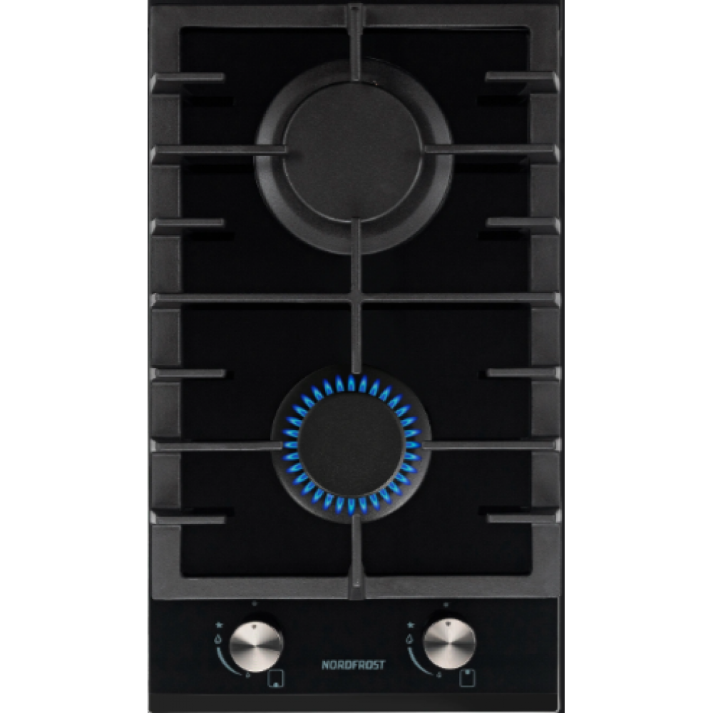 Газовая варочная поверхность NORDFROST HM 3023 B выполнена из закаленного стекла в черном цвете, оснащена двумя конфорками с газовым подключением, функцией газ-контроль и автоматическим электророзжигом от ручек.