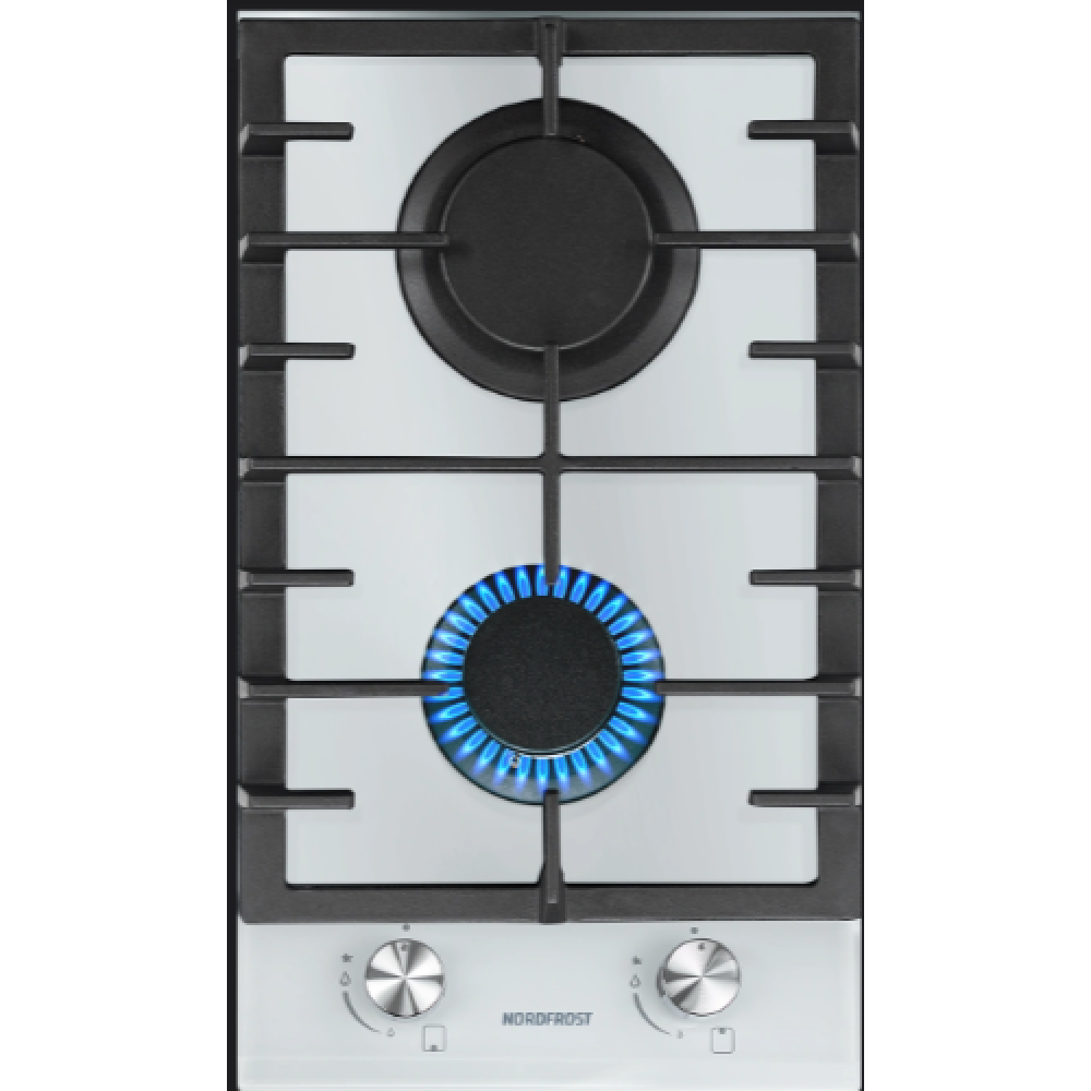 Газовая варочная поверхность NORDFROST HM 3023 W выполнена из закаленного стекла в белом цвете, оснащена двумя конфорками с газовым подключением, функцией газ-контроль и автоматическим электророзжигом от ручек.